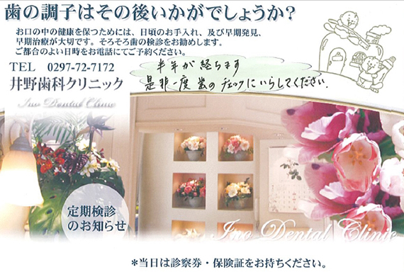 このようなハガキが届きますので、その際には再度ご予約下さいませ。